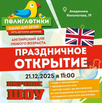 21 декабря состоится торжественное ОТКРЫТИЕ нашего языкового центра «Полиглотики» 🎉